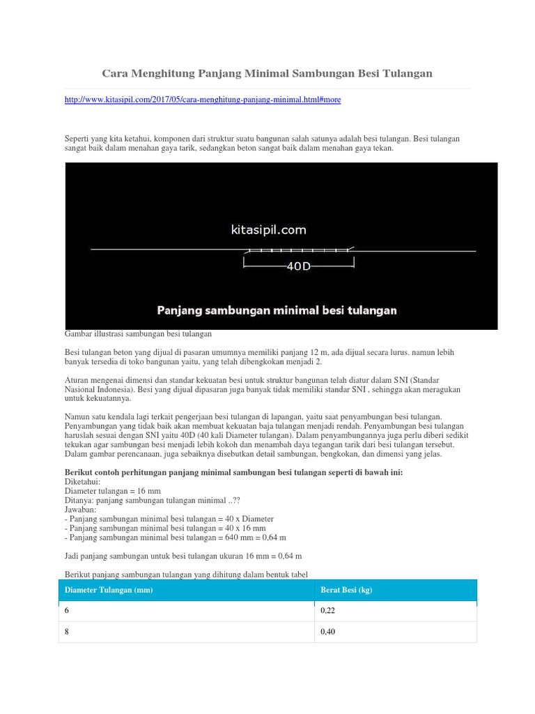 Cara Menghitung Panjang Minimal Sambungan Besi Tulangan Pdf